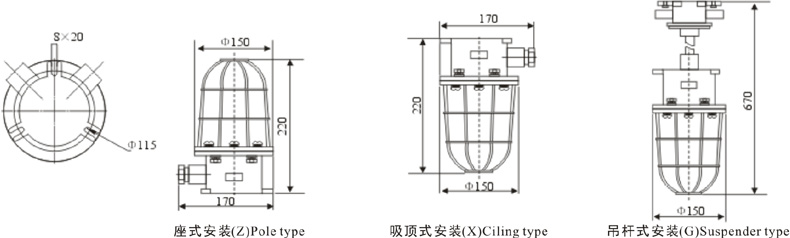 2、鋼化玻璃燈罩、強度高、耐沖擊,顏色有紅、黃、藍等供選擇;