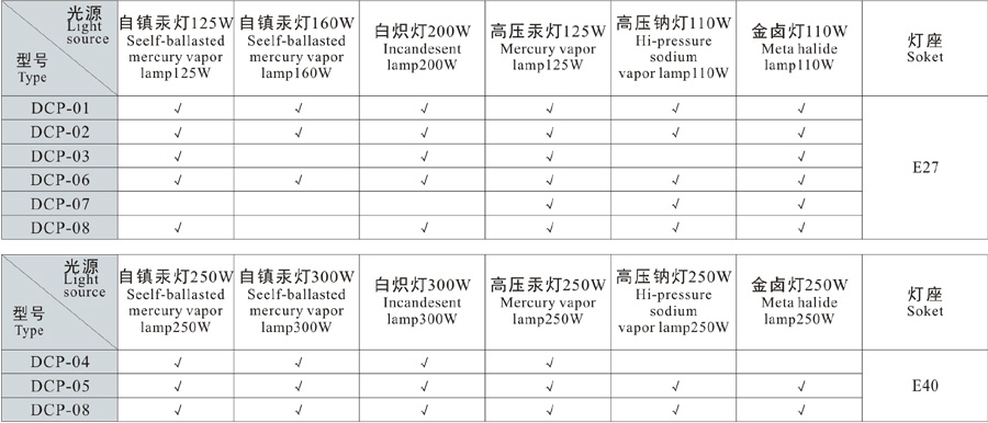 3、Type 01、02、05、06can install lamp cover to user's requirement.